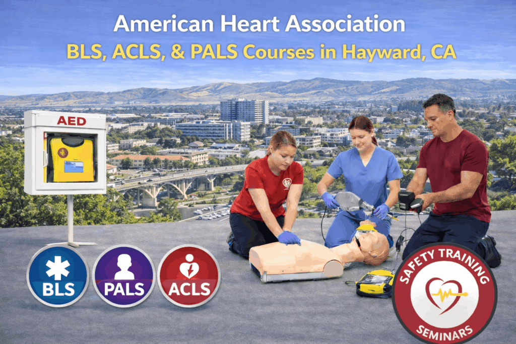 Hayward’s strategic central position within Alameda County makes Safety Training Seminars the most accessible and most comprehensively equipped ACLS certification provider for acute care professionals across the region. We actively serve clinical providers from communities throughout the entire county, including Oakland, Fremont, Berkeley, San Leandro, Livermore, Newark, Union City, Pleasanton, Dublin, Emeryville, Alameda, Albany, Piedmont, Castro Valley, and San Lorenzo. Our centrally located Hayward facility, multi-format scheduling options, and on-site group training capabilities ensure that every advanced practice provider and acute care clinician in Alameda County has a high-quality, logistically realistic pathway to AHA ACLS certification through our programs.